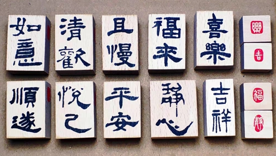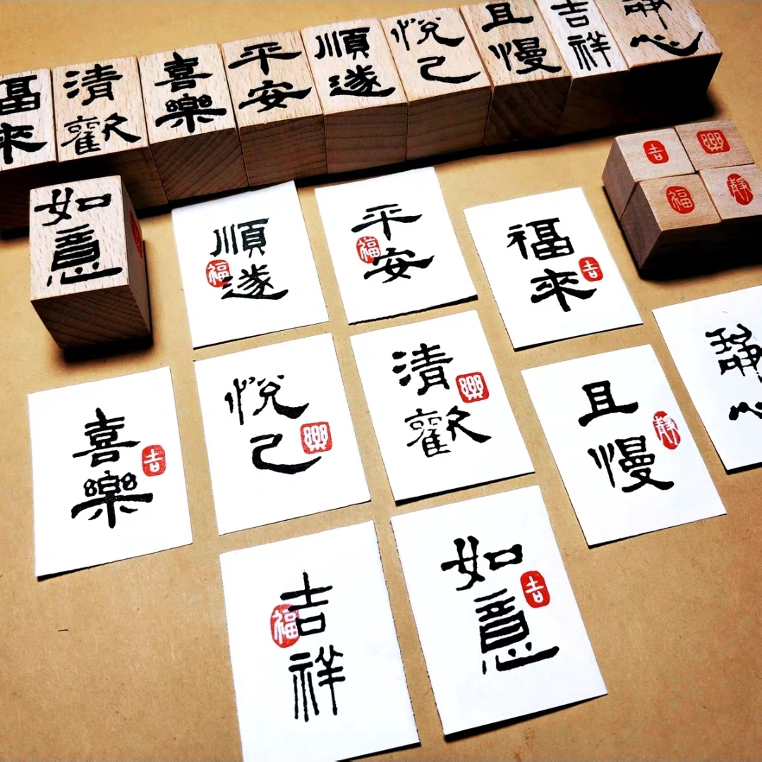D022 新年3厘米木印章 一套14個
